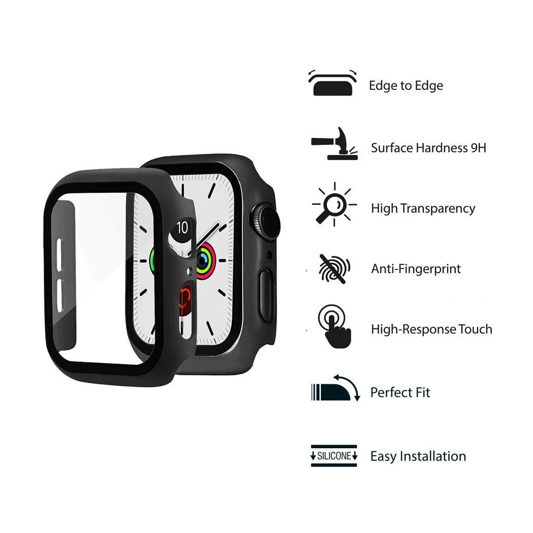 2x Savvies étui avec verre trempé, Full Cover étui pour Apple Watch Ultra / Ultra 2 (noir)
