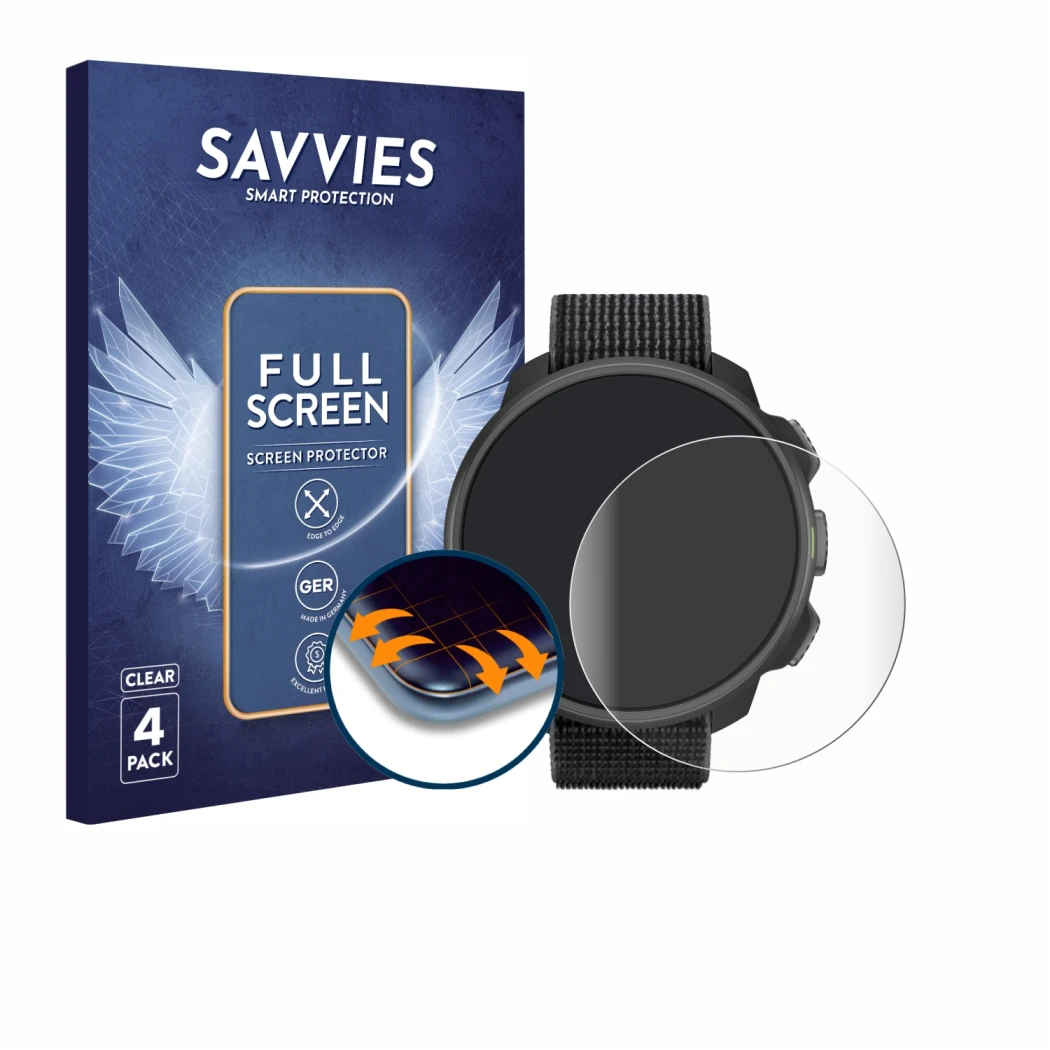 Le film de protection souple Savvies Full-Screen s'adapte parfaitement à ton appareil arrondi et protège au mieux ton Suunto Nautic S des rayures et de la poussière.